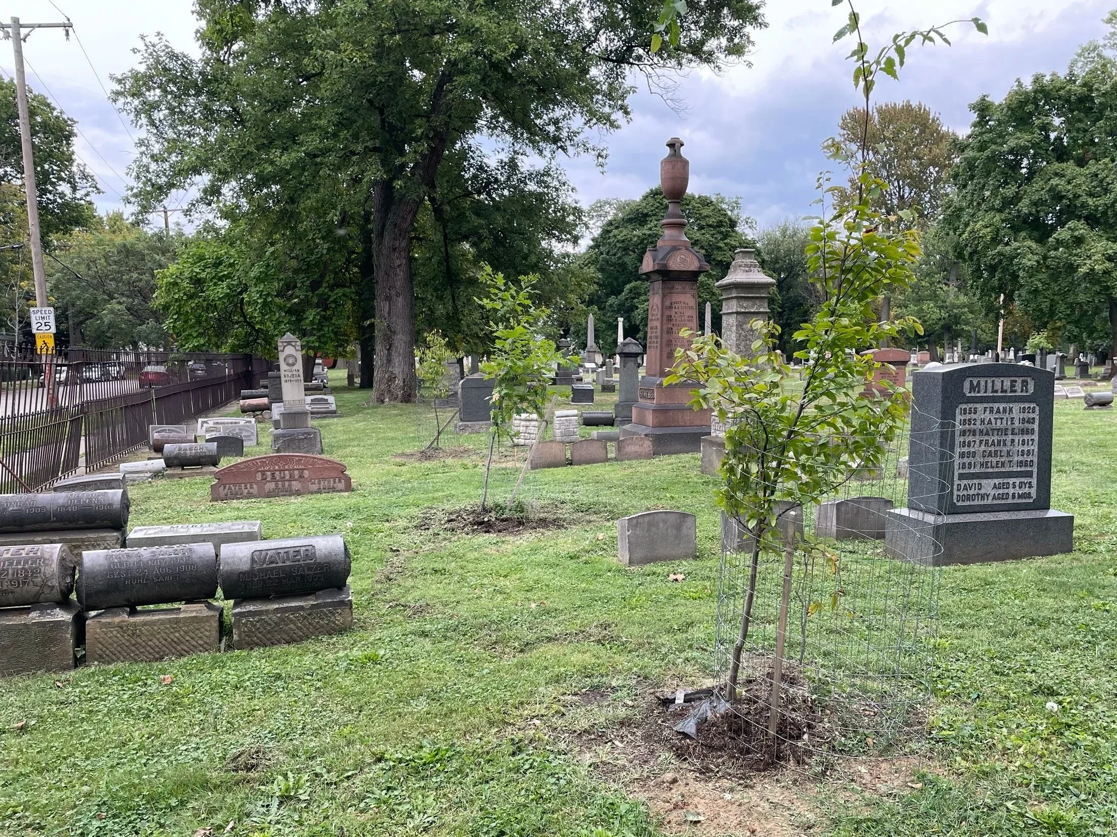 Succession planting is the planting of new trees with the expectation that they will someday take the place of older trees in the urban canopy. Many of the trees in Monroe Street Cemetery are at least a hundred years old and coming towards the end of their lifespan. Losing these trees without replacing them would result in loss of shade within the largest greenspace in Ohio City. The Monroe Street Cemetery Foundation’s work is invaluable to living up to our name as the “Forest City.”