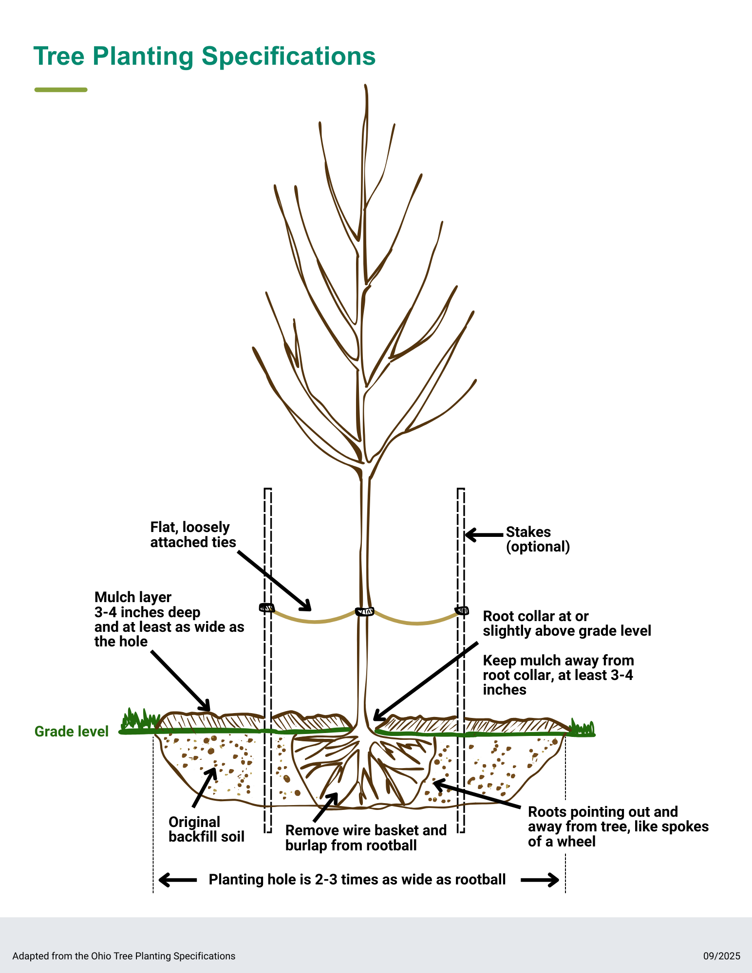 Planting the right tree in the right place not only ensures the tree has a long and healthy life, but also can mitigate potential damage from storms and invasive species.